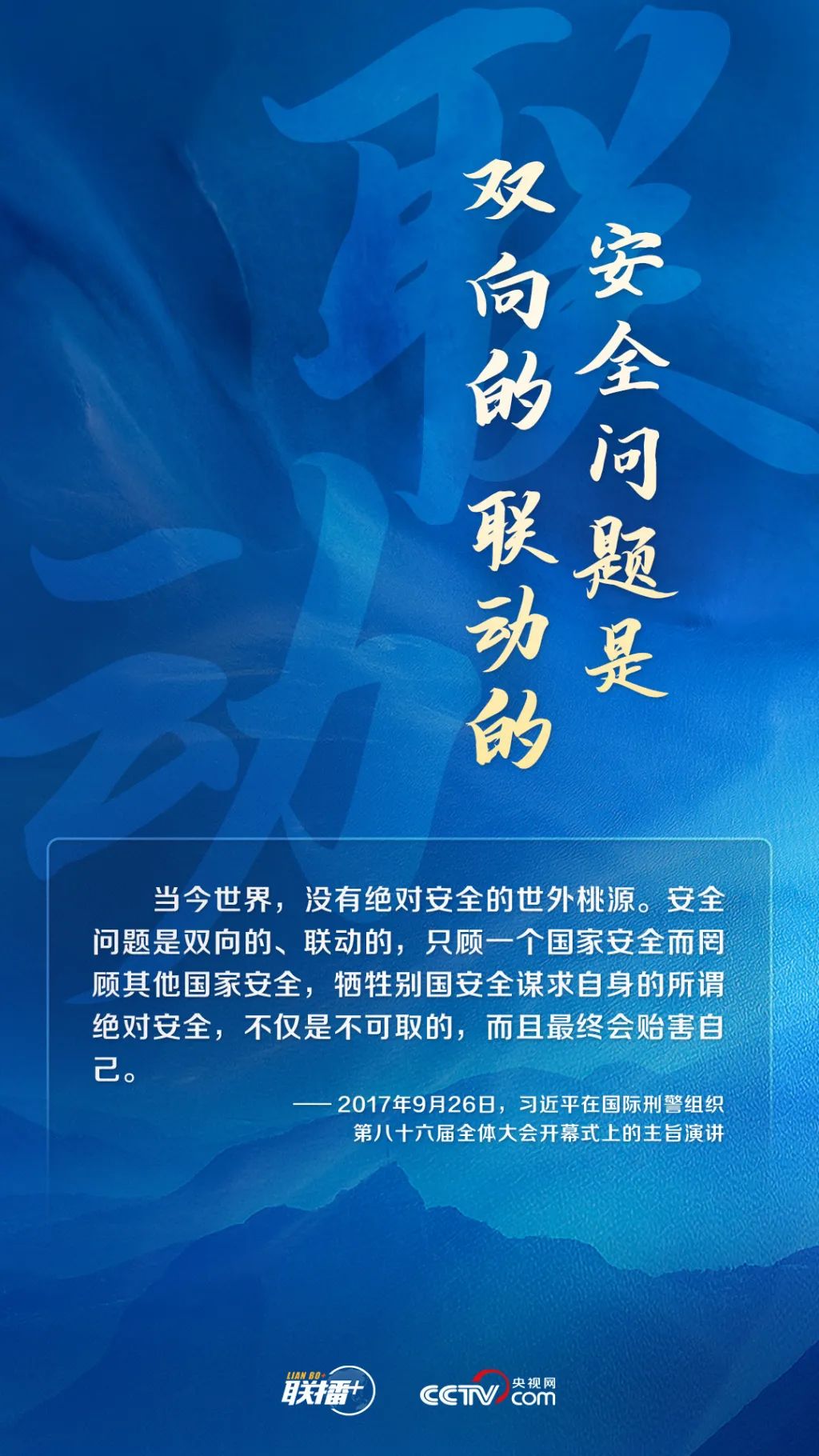 2022年4月21日,习近平主席首次提出以“六个坚持”为主要内容的全球安全倡议。其中“坚持”之一是“坚持重视各国合理安全关切,秉持安全不可分割原则,构建均衡、有效、可持续的安全架构,反对把本国安全建立在他国不安全的基础之上”。
